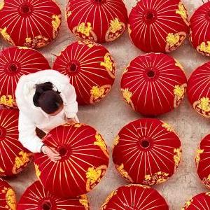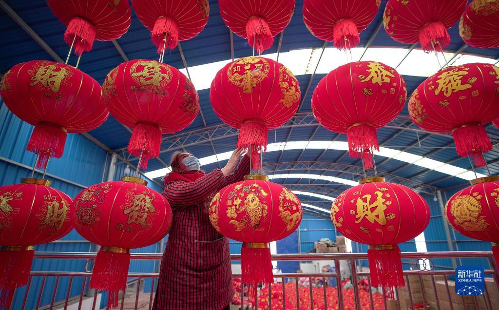 新年臨近,工人忙著(zhù)趕制各式燈籠,供應節日市場(chǎng)。