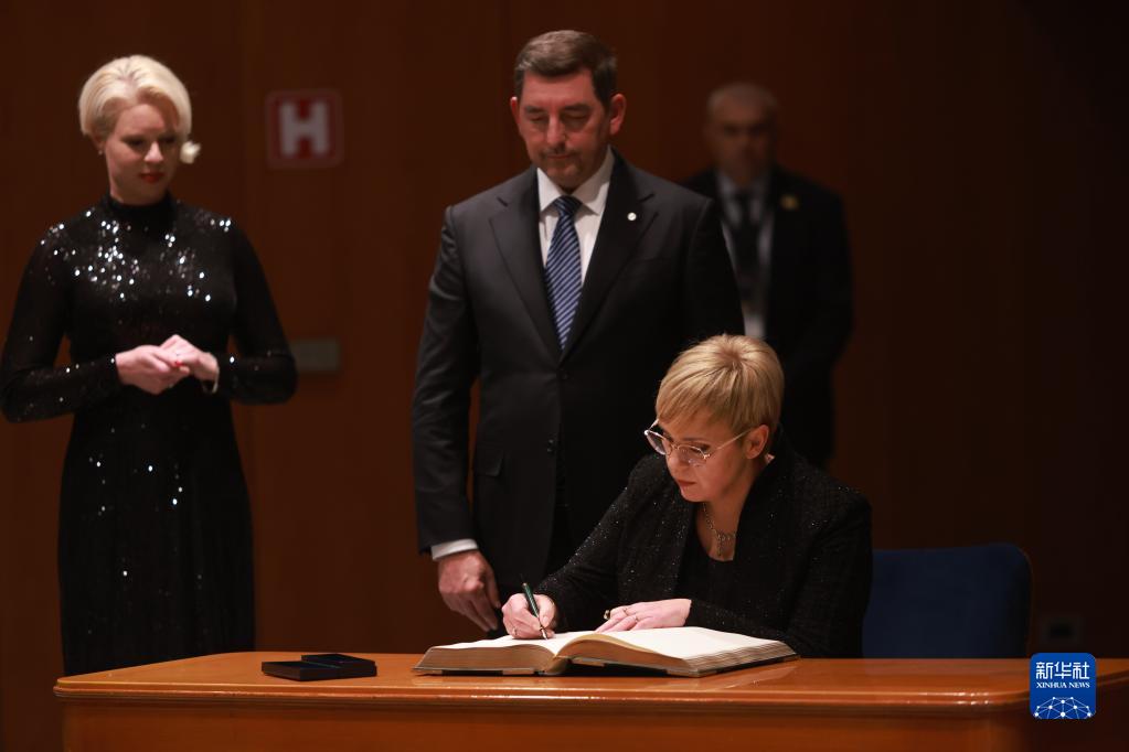 12月22日,在斯洛文尼亞首都盧布爾雅那,娜塔莎·皮爾茨·穆薩爾在總統就職儀式上簽字。
