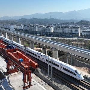 當日,在安徽省池州市,中鐵十一局池(州)黃(山)鐵路站前一標完成最后一榀箱梁架設任務(wù),標志著(zhù)該標段轉入線(xiàn)上施工階段。池黃鐵路全長(cháng)約125公里,設計時(shí)速350公里,是武(漢)杭(州)快速鐵路通道的重要組成部分。