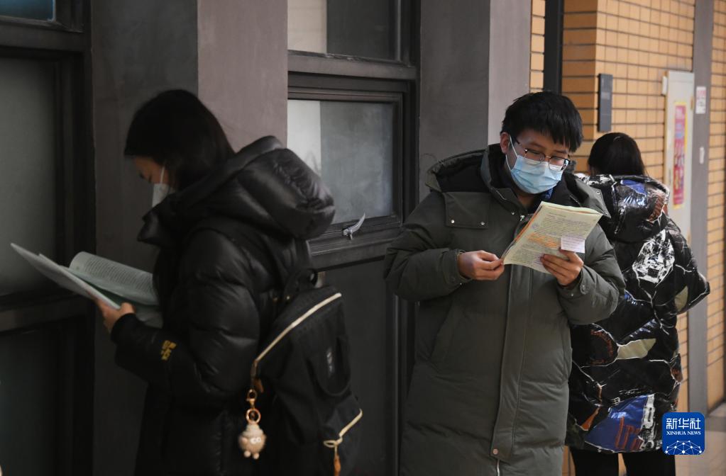 12月24日,在北京外國語(yǔ)大學(xué)考點(diǎn),考生在進(jìn)入考場(chǎng)前復習。