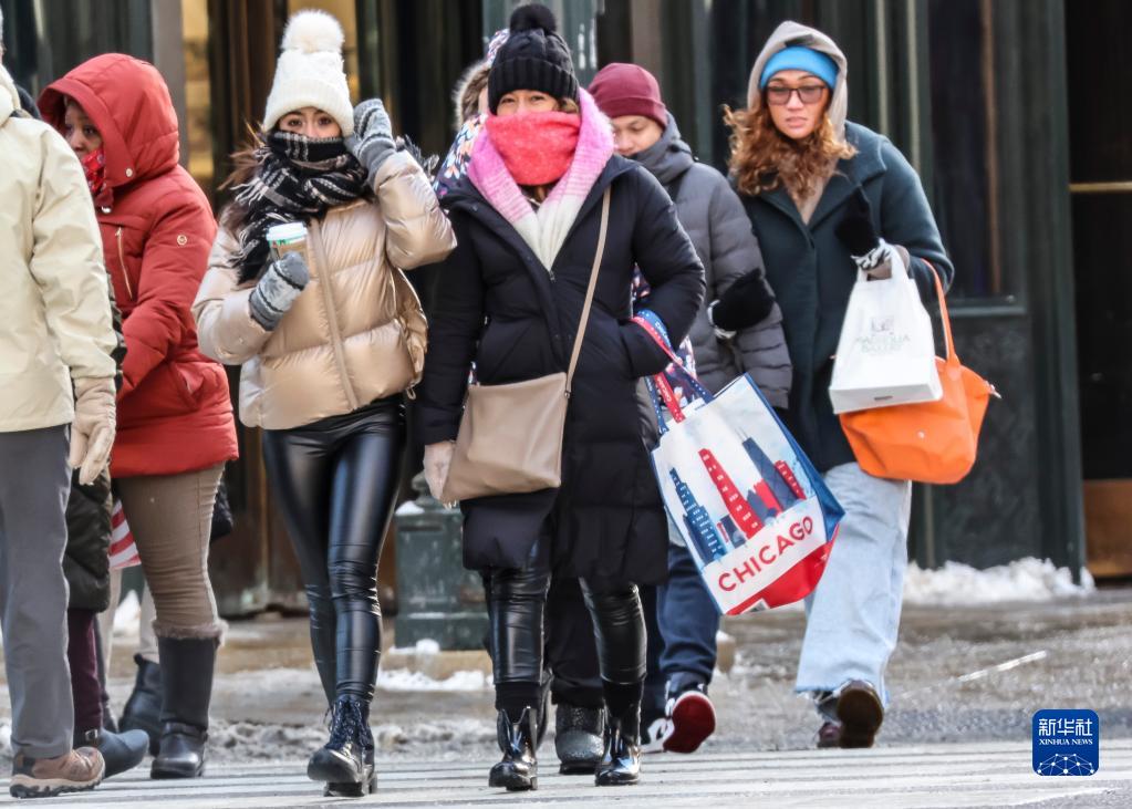 12月24日,人們冒著(zhù)嚴寒在美國芝加哥市中心購物。