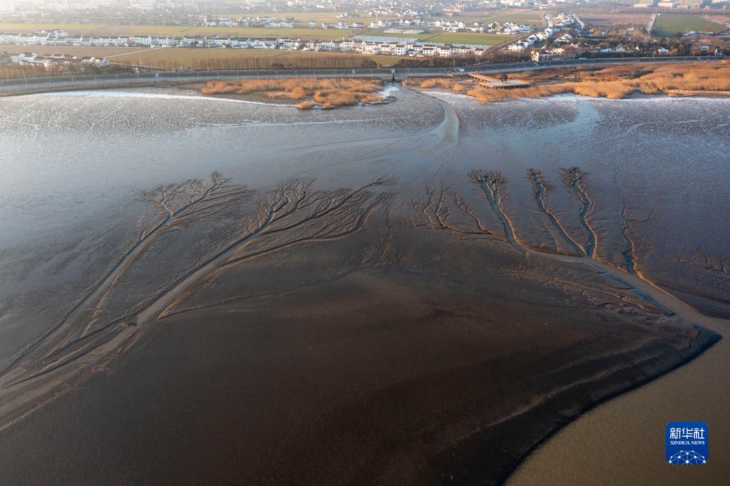 江蘇張家港:冬日江灘“潮汐樹(shù)”