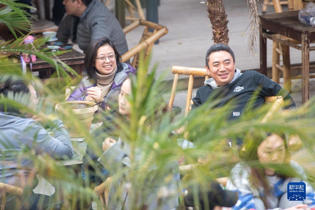 12月24日,市民游客在位于重慶解放碑商圈的著(zhù)名景點(diǎn)山城巷一家店內聊天休息。