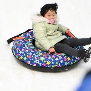 12月25日,在蘭州市北山林場(chǎng),游客在冰雪嘉年華上體驗雪地娛樂(lè )項目。