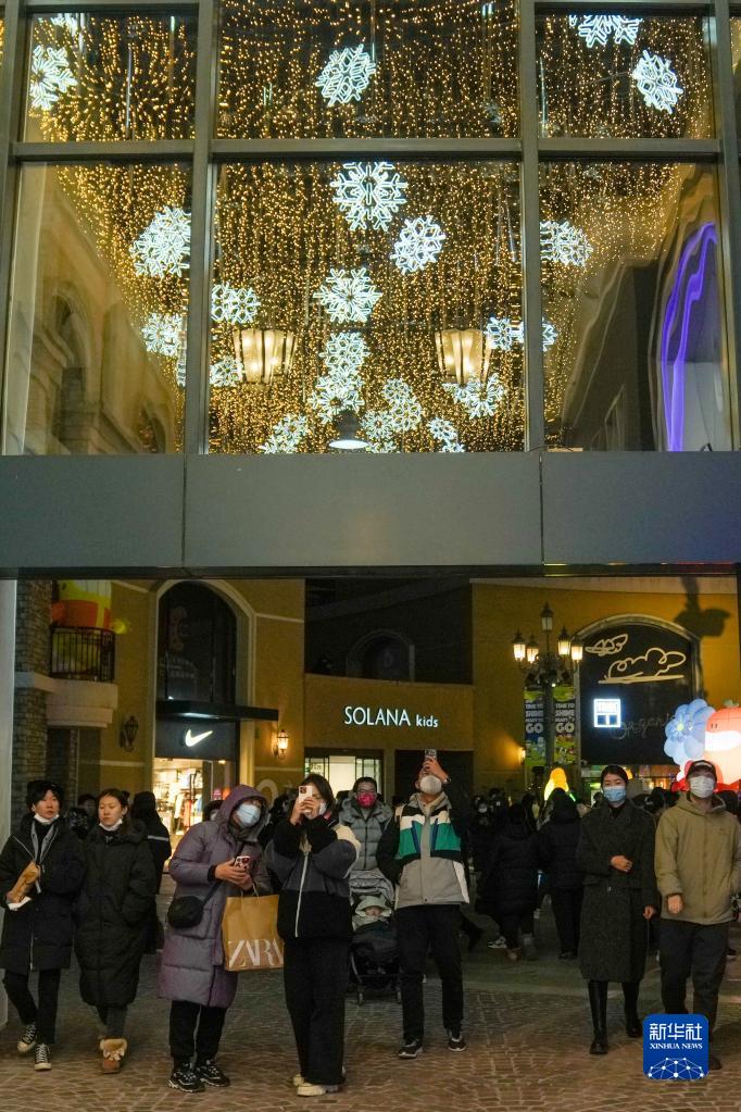 市民在北京市朝陽(yáng)區藍色港灣購物中心購物休閑(12月24日攝)。