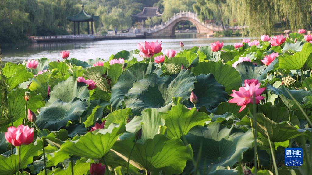 這是在江蘇省揚州市瘦西湖風(fēng)景區拍攝的夏日荷花(2022年6月21日攝)。