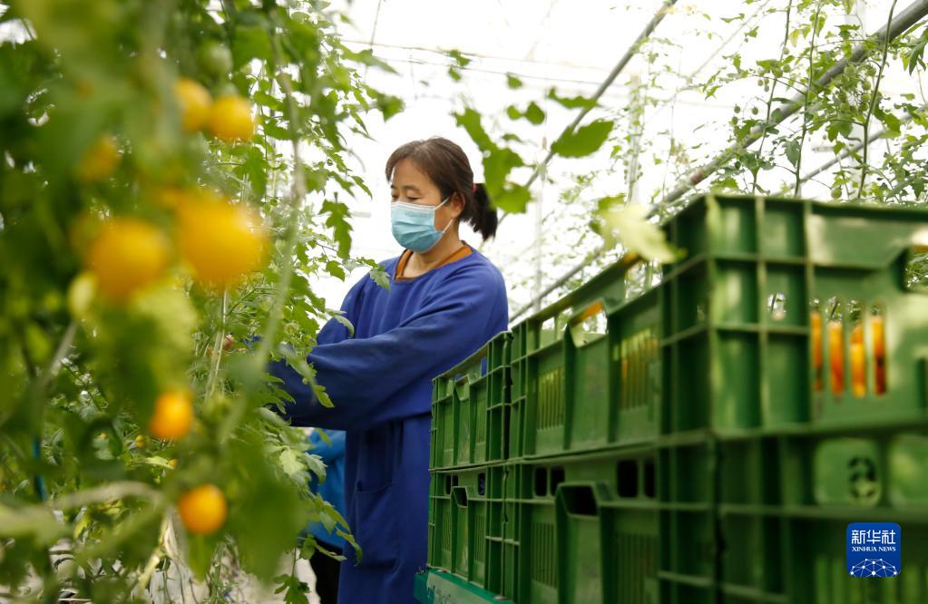 12月27日,在邢臺市南和區賈宋鎮一家現代農業(yè)園區,工人在采摘西紅柿。