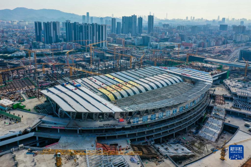 廣州白云火車(chē)站項目一期金屬屋面和二期主體結構建設現場(chǎng)(無(wú)人機照片,12月27日攝)。