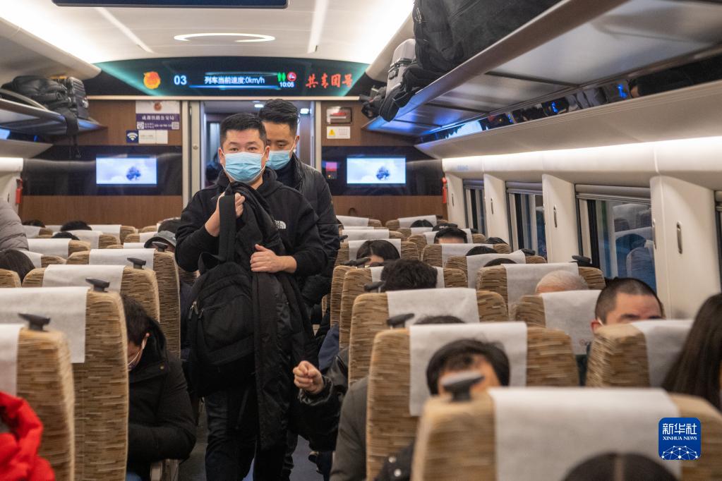 12月27日,在重慶北站即將發(fā)車(chē)的G8612次成渝城際高鐵“復興號”智能動(dòng)車(chē)組車(chē)廂內,乘客準備入座。