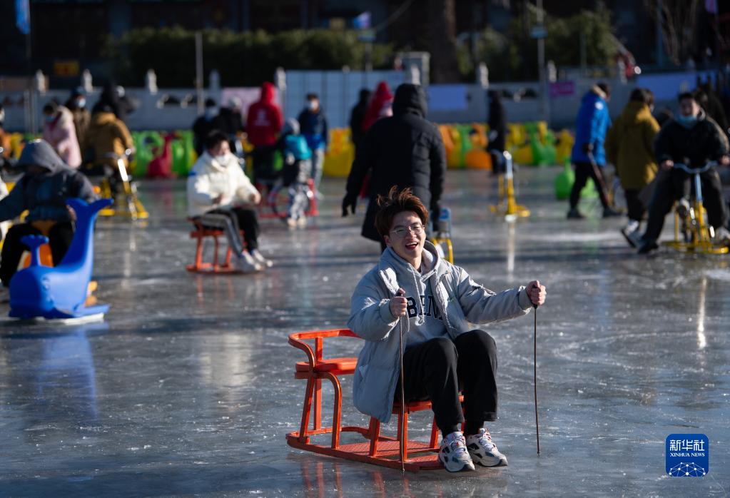 當日,北京什剎海冰場(chǎng)正式對外營(yíng)業(yè),吸引人們到此感受冬日冰趣。