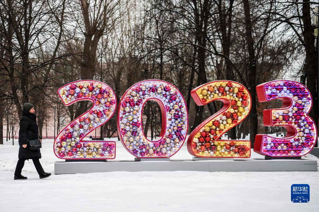 12月27日,市民經(jīng)過(guò)俄羅斯首都莫斯科的一處新年裝飾。