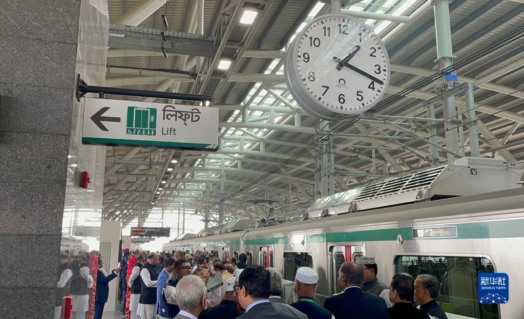 這是12月28日在孟加拉國首都達卡拍攝的輕軌站臺(手機照片)。