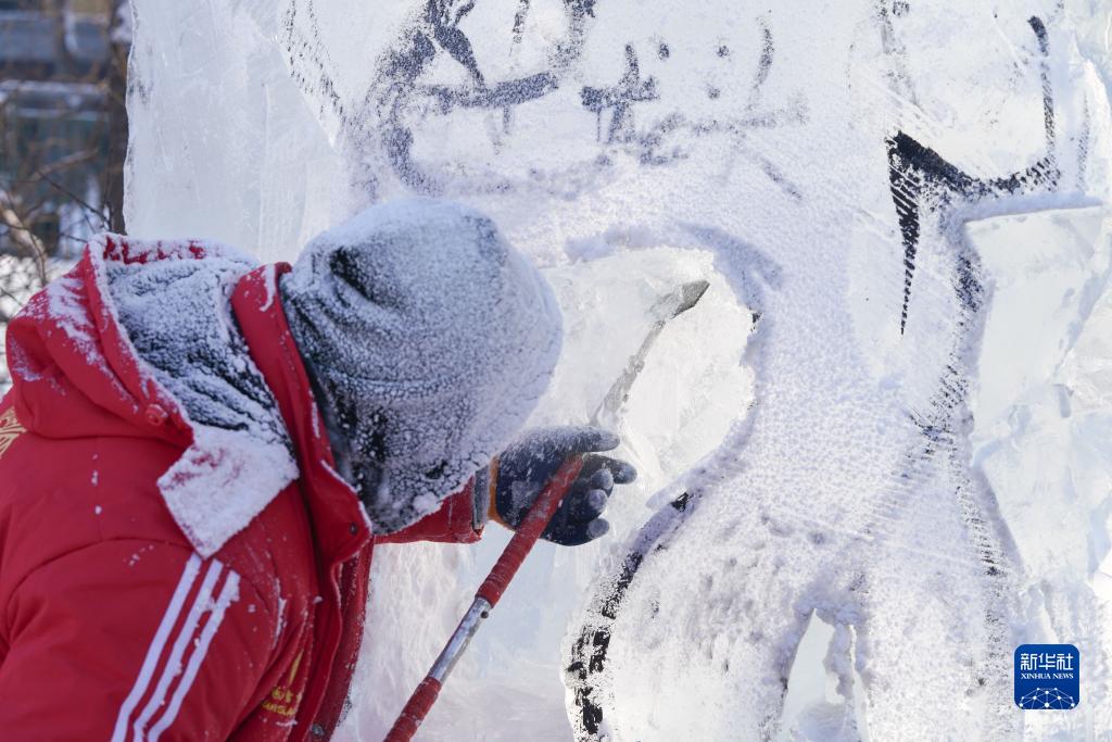 12月29日,參賽選手在進(jìn)行冰雕創(chuàng )作。