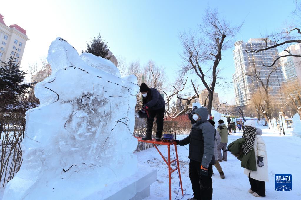 12月29日,參賽選手在進(jìn)行冰雕創(chuàng )作。