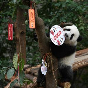 元旦將至,成都大熊貓繁育研究基地內13只2022年新生大熊貓寶寶集體亮相,為游客們送上新年祝福。