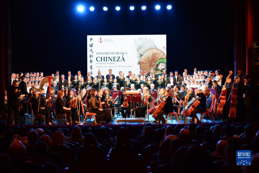 這是12月28日在摩爾多瓦首都基希訥烏拍攝的中國摩爾多瓦建交30周年新年音樂(lè )會(huì )現場(chǎng)。