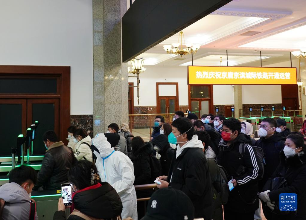 12月30日,乘坐北京開(kāi)往秦皇島的G8801次列車(chē)的乘客在北京站檢票。