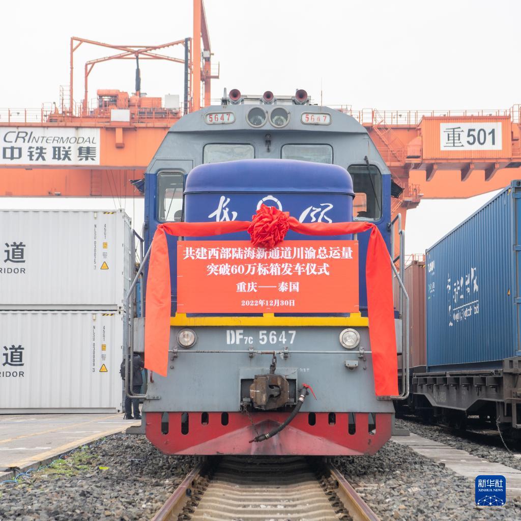 當日,兩列西部陸海新通道鐵海聯(lián)運班列分別從成都國際鐵路港和重慶團結村中心站發(fā)出,將經(jīng)廣西欽州港分別到達馬來(lái)西亞和泰國。本次班列發(fā)運,標志著(zhù)西部陸海新通道川渝總運量突破60萬(wàn)標箱。