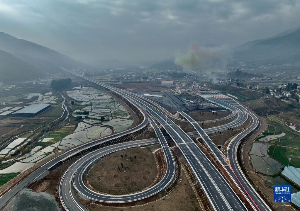 12月30日,俯瞰德昌至會(huì )理高速公路會(huì )理北互通(無(wú)人機照片)。