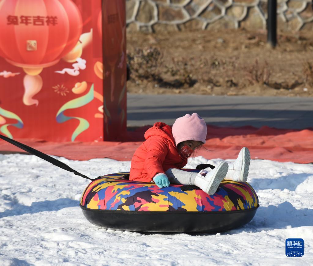 12月31日,一名小朋友在圓明園雪場(chǎng)玩耍。