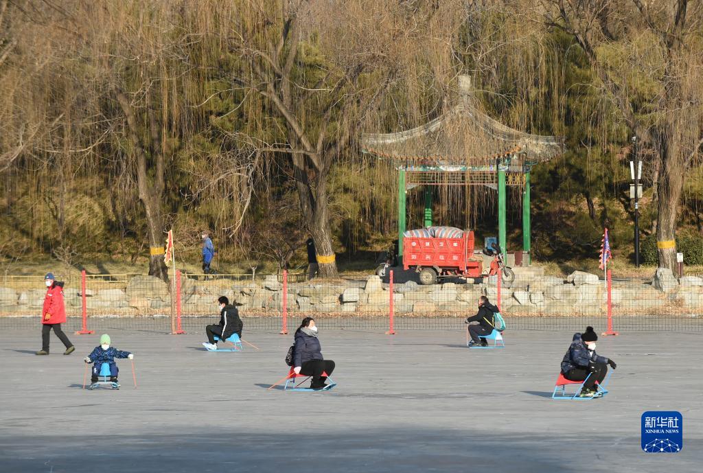 12月31日,游客在圓明園冰場(chǎng)滑冰車(chē)。
