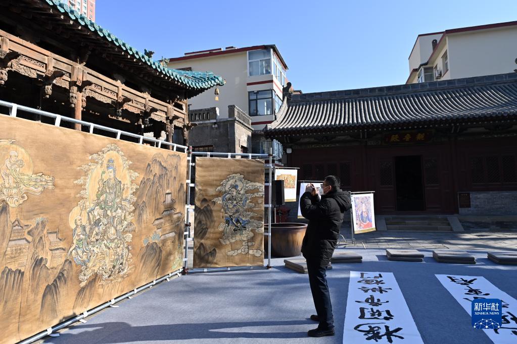 當日,“太原市府城文化藝術(shù)實(shí)踐系列陳展”在位于山西省太原市的文殊寺府城歷史文化陳列館開(kāi)幕。展覽通過(guò)壁畫(huà)復制品、書(shū)法、音樂(lè )、繪畫(huà)等一系列藝術(shù)形式,展示太原府城的傳統文化。