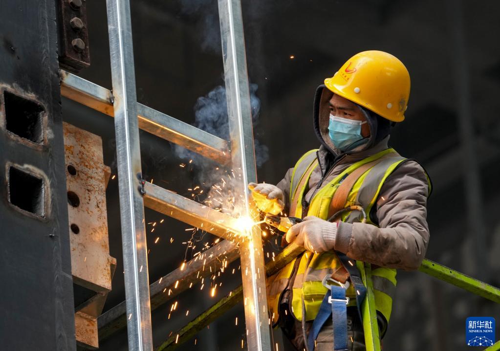 12月31日,工人在京東方(重慶)智慧系統創(chuàng )新中心項目施工現場(chǎng)進(jìn)行施工作業(yè)。