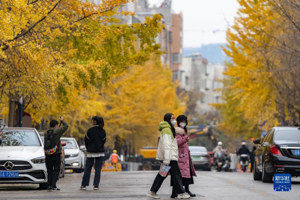 近日,云南省昆明市文林街街道兩側的銀杏進(jìn)入最佳觀(guān)賞期,金黃色的樹(shù)葉掛滿(mǎn)枝頭,吸引游客前來(lái)觀(guān)賞。