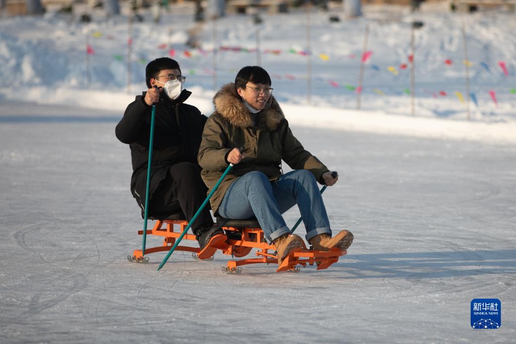 當日,許多市民和游客來(lái)到第35屆哈爾濱太陽(yáng)島國際雪雕藝術(shù)博覽會(huì )園區游玩,歡度元旦假期。