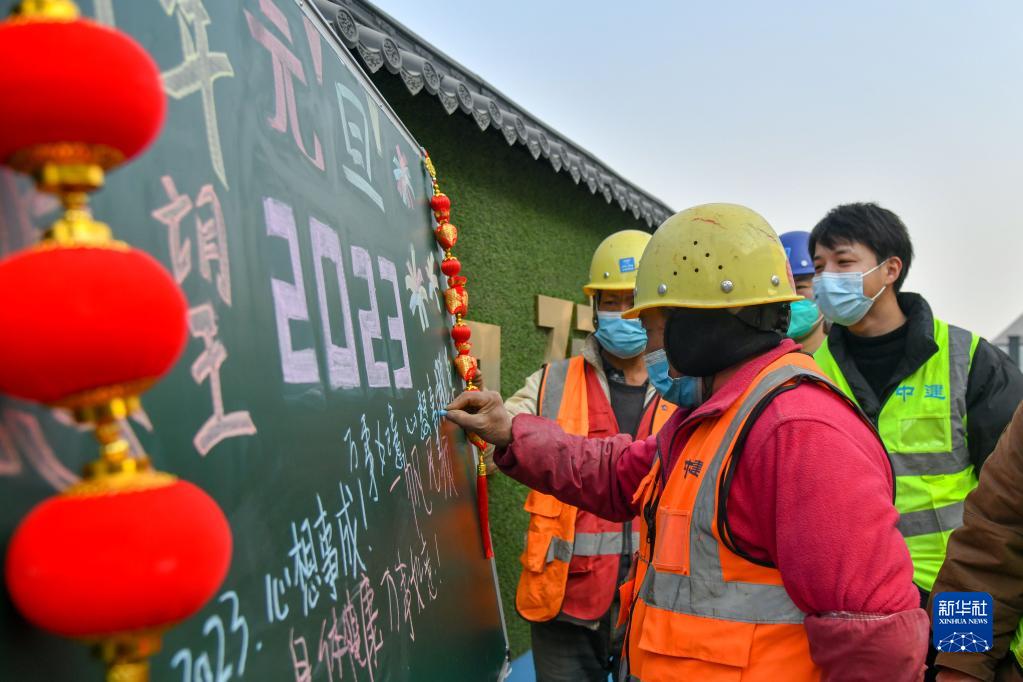 當日,在山東濟南唐冶醫院工程項目現場(chǎng),參與施工的中建三局集團有限公司為元旦假期堅守崗位的工友舉行集體生日會(huì ),共同迎接新年的到來(lái)。