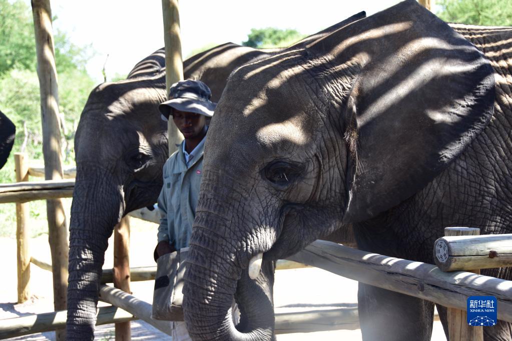 12月26日,在博茨瓦納東北部馬翁的大象孤兒院,飼養員照料幼象。