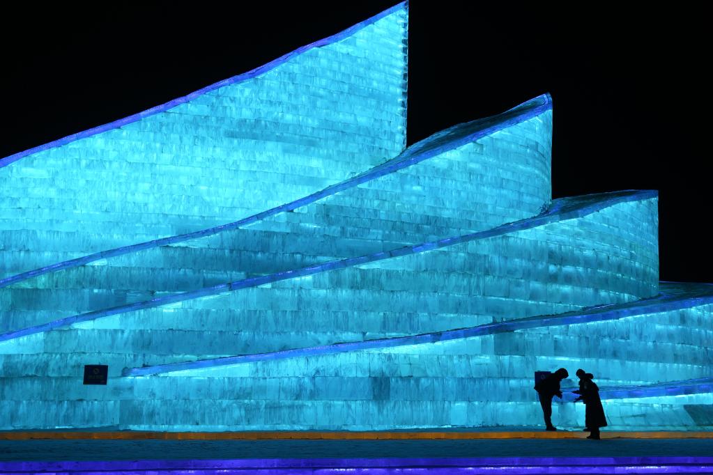 當日,許多市民和游客來(lái)到哈爾濱冰雪大世界園區游玩,迎接新年到來(lái)。
