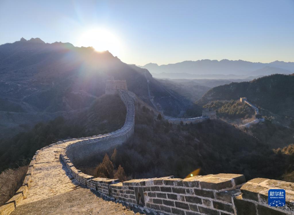 1月1日在北京密云古北水鎮司馬臺長(cháng)城拍攝的日出。
