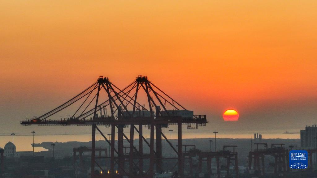 1月1日,晨光中的河北唐山港京唐港區碼頭(無(wú)人機照片)。