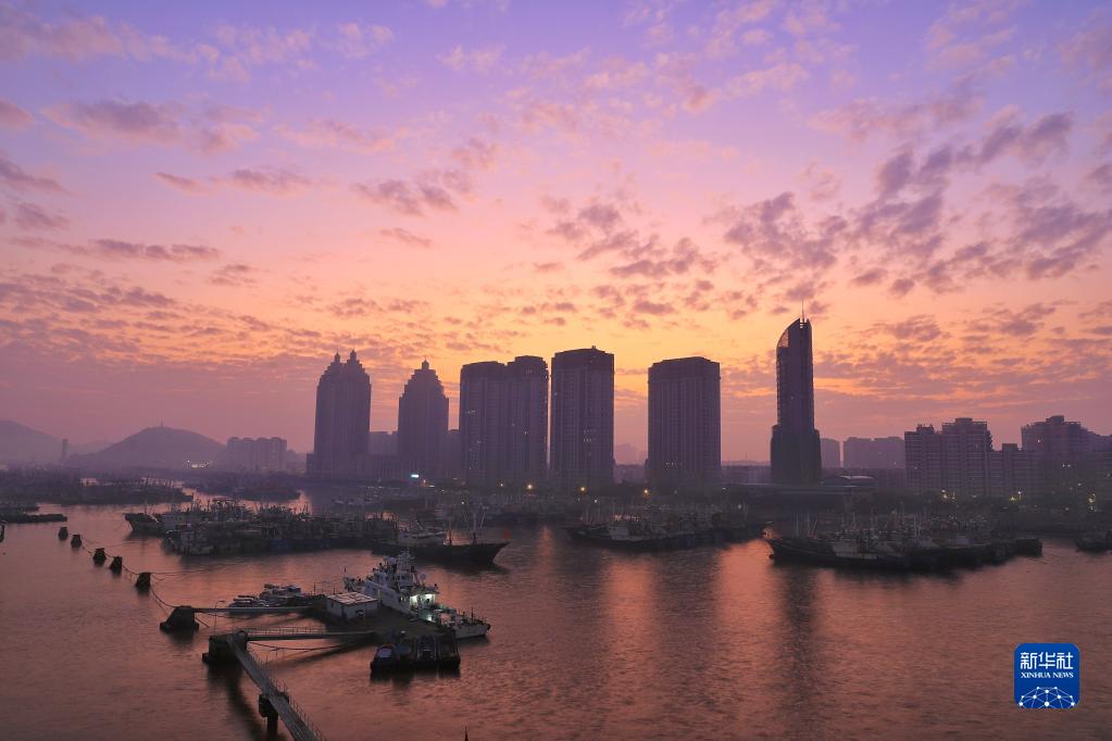 1月1日早上,新年第一縷陽(yáng)光映照下的舟山沈家門(mén)漁港。