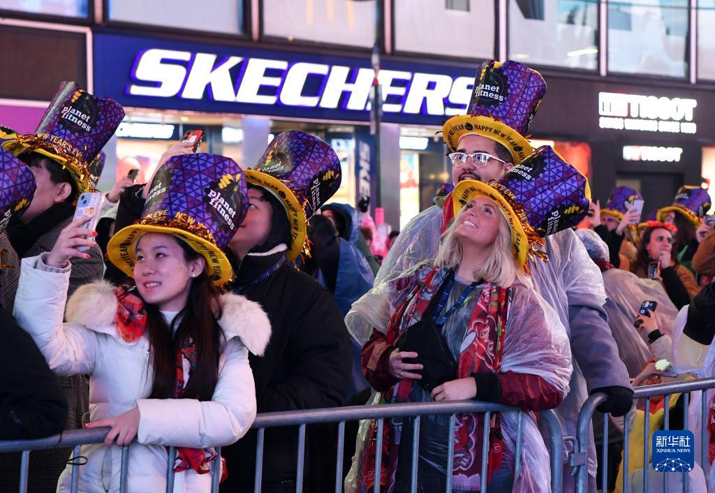 2022年12月31日,人們在美國紐約時(shí)報廣場(chǎng)參加跨年活動(dòng)。