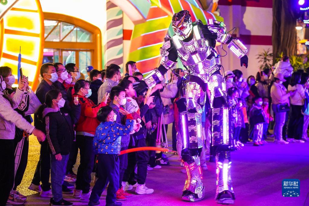 游客在廣州長(cháng)隆旅游度假區游園迎接新年(2022年12月31日攝)。
