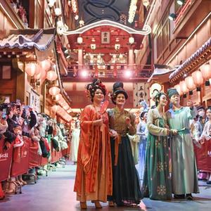 2022年12月31日,游客在長(cháng)安十二時(shí)辰主題街區觀(guān)看表演。