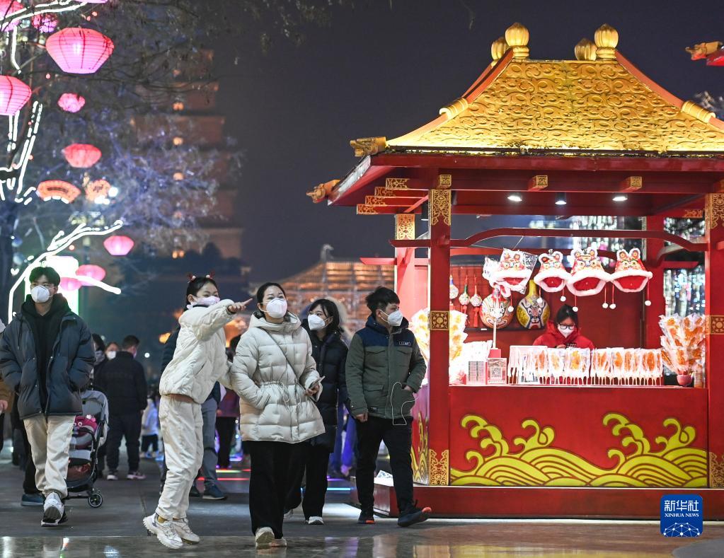 2022年12月30日,游客在大唐不夜城步行街游玩。