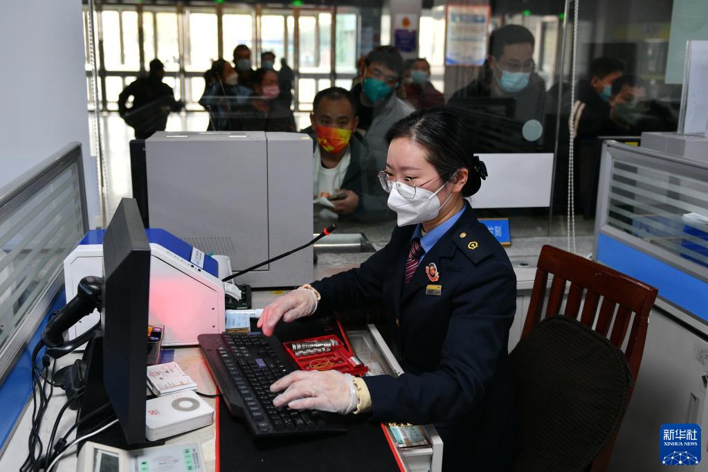 1月1日,江蘇常州火車(chē)站鐵路工作人員在售票處為乘客出售火車(chē)票。