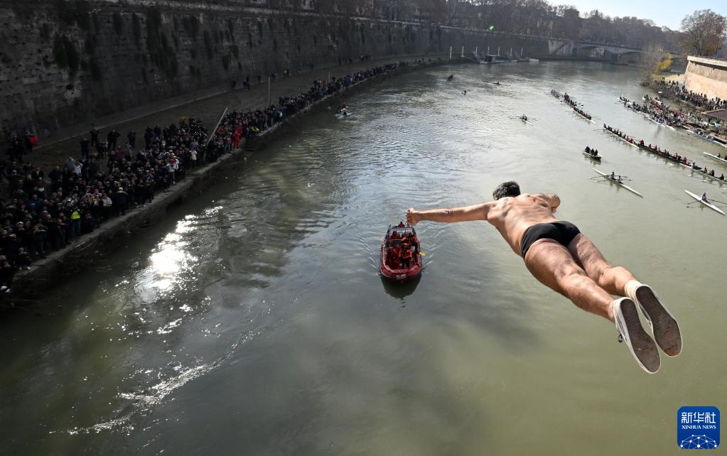 2023年1月1日,一名男子從意大利羅馬的加富爾橋躍入臺伯河中。