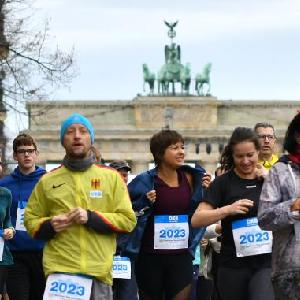 1月1日,人們在德國柏林菩提樹(shù)下大街參加新年跑活動(dòng)。
