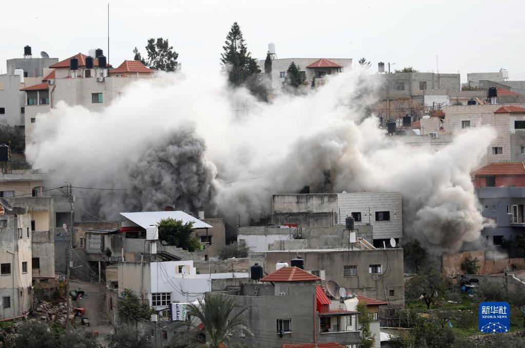 1月2日,在約旦河西岸北部城市杰寧,以色列軍隊對房屋實(shí)施爆破。