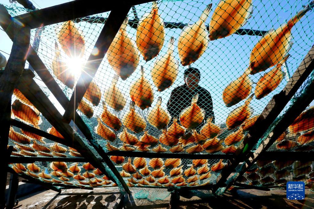 春節臨近,山東省青島市即墨區鰲山衛街道的漁民利用晴好天氣,將捕獲的海魚(yú)進(jìn)行切割、腌制、晾曬,加工成魚(yú)干,供應節日市場(chǎng)。