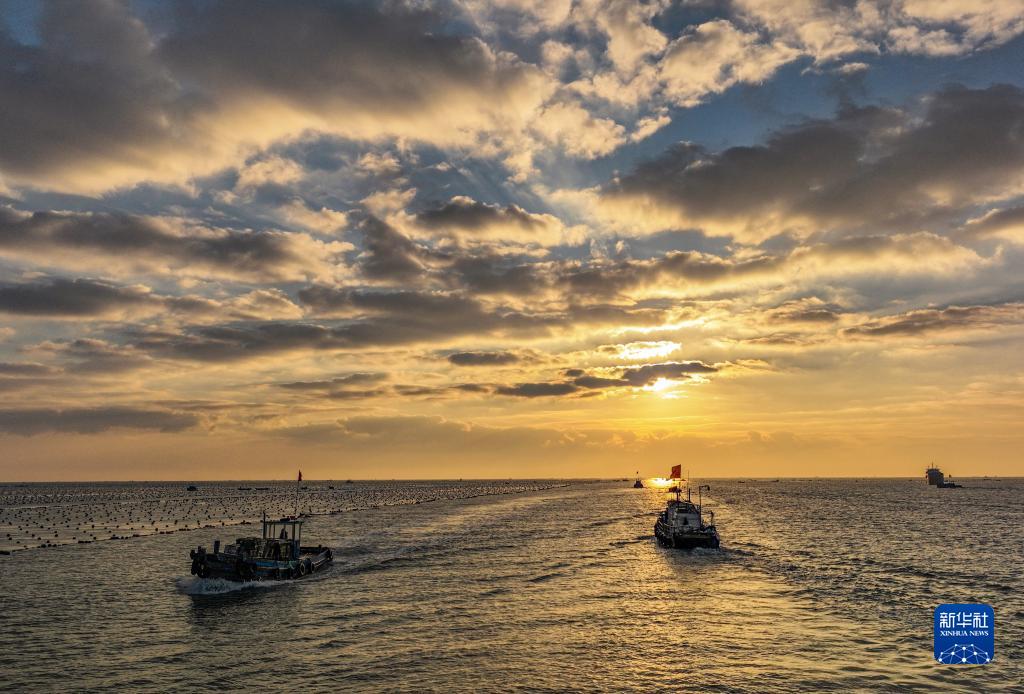 當日,在山東省榮成市尋山街道愛(ài)倫灣海洋牧場(chǎng),漁民駕駛漁船在海上忙碌著(zhù),呈現一幅“海上冬耕”的畫(huà)面。