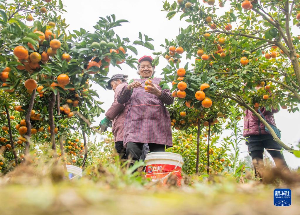 1月3日,在湖南省永州市道縣清塘鎮尹家村真秀農業(yè)果園基地,農民在采收柑橘。