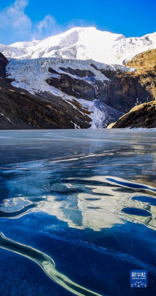 崗布錯又名“卡盯寺米”,位于西藏山南浪卡子縣崗布溝內,海拔約5200米。冬季的崗布錯湖面冰層厚達數米,平滑如鏡,表面呈藍色,晶瑩剔透。