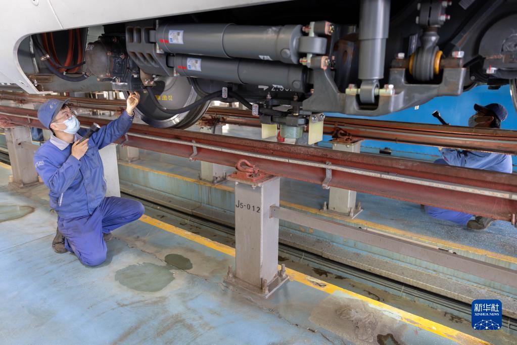 2023年春運即將到來(lái),上海動(dòng)車(chē)段虹橋動(dòng)車(chē)運用所加緊開(kāi)展高鐵檢修工作,保障春運安全。