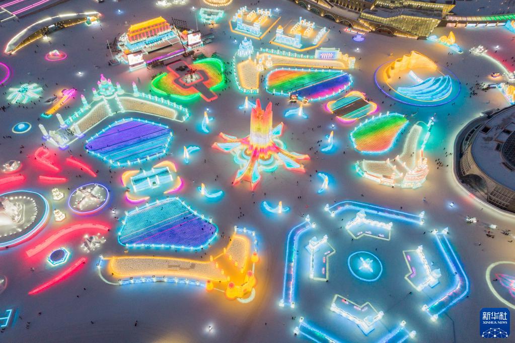 這是1月3日拍攝的第24屆哈爾濱冰雪大世界園區(無(wú)人機照片)。