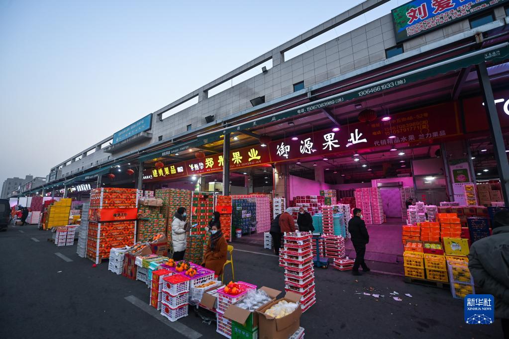 春節臨近,在浙江金華農產(chǎn)品批發(fā)市場(chǎng)和水果批發(fā)市場(chǎng),來(lái)自各地的蔬菜水果品種豐富、供應充足,市面購銷(xiāo)兩旺、年味十足。
